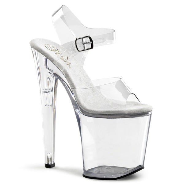 8" (20.3cm) Spike Heel, 4" (10.2cm) Platform Ankle Strap Peep Toe Sandal