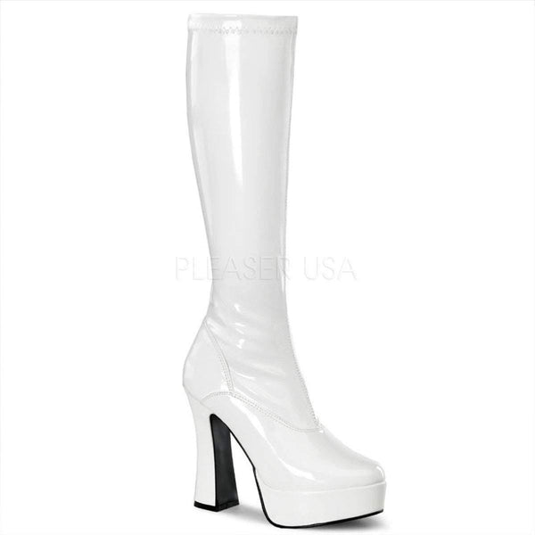 A chic knee length patent boots made in man-made leather featuring pull-up with top stretch material for a perfect fit and inner side zip enclosure.